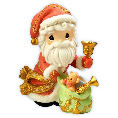 Infused with honest emotion it shares a message that speaks straight to the heart.Indoor Use Only; Should Be Dusted Occasionally.Packaged in a box made from recycled materials.Precious Moments Porcelain Bisque Annual Santa Figurine, sharing a very merry message, "May Your Christmas Ring With Joy" is sure to please.Each Piece Is Porcelain Bisque; Hand Sculpted and Hand Painted. Precious Moments Annual Santa Figurine, Second Series, this delightful Kris Kringle figurine is sure to please.