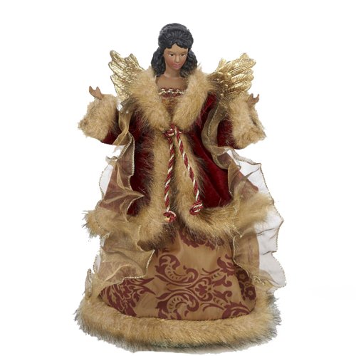Kurt Adler 12-Inch African American Angel in Red and Gold Treetop Feature