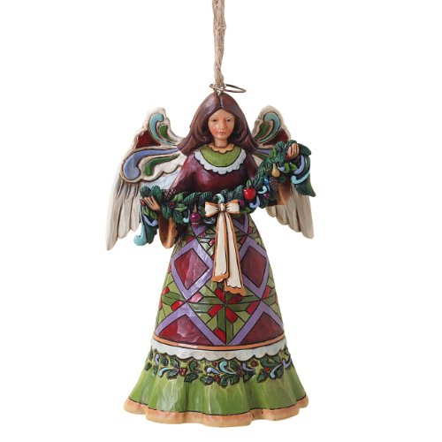 Enesco Jim Shore Heartwood Creek Red and Green Angel with Garland Ornament, 4-1/2-Inch Feature