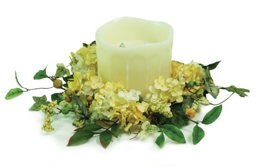 Melrose Soft Yellow Hydrangea Candle Ring, 13-Inch Diameter Feature