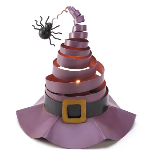 Fun gift idea for Halloween Creates a fascinating display with a lit candle Features a spring-coiled top and spider charm Whimsical decoration resembling a witch's hat Creative craftsmanship from Iron