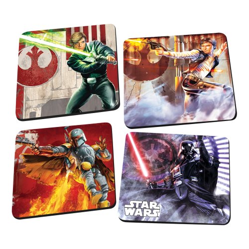 Vandor 99085 Star Wars 4-Piece Wood Coaster Set, Multicolored Feature