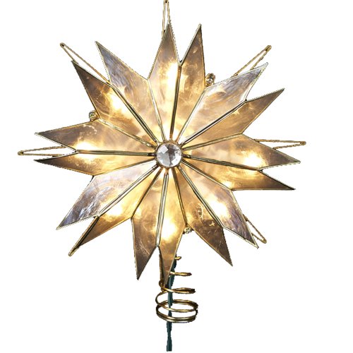 Kurt Adler 9-Inch Double-Point Natural Capiz Star Lighted Treetop Feature