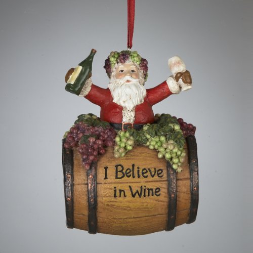 Kurt Adler 4-Inch Polyresin Santa on Wine Barrel Ornament Feature