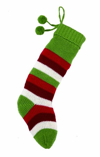 Peking Handicraft Holiday Knit Stockings, Green with Green Pom Pom