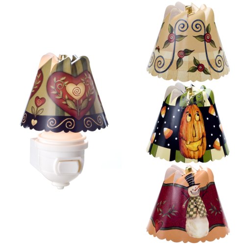 Simply put the shade on top of the spindle (included) and watch as it magically starts to turn. Every home needs the gift of light! These charming country designs take you through the four seasons with " Country Hearts, " Flowers and Swirls" , "Mr. Pumpkin" and "Country Snowman". Our nightlight is a friendly little light, day or night with it's happily spinning shade. Our signature shades turn simply from the warmth of the bulb, to create light, motion, and magic. The gently revolving shade is both soothing, and gives off enough light to truly see down the hallway on the darkest night. Used in bathrooms, kitchens, hallways and of course bedrooms to add comfort and safety at night. This set of four shades provides a shade for each season .People love to change their shades for with the season for an instant change of decor. This charming shade is an update of an antique Christmas ornament that had been in the family for 60 years. This newer version is patented and has been UL approved for safety. The shade is heat resistant and also UL approved just by itself. The nightlight takes a standard 7 watt nightlight replacement bulb, commonly available.