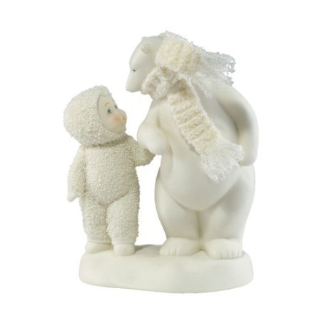 A quiet walk, and a loving glance are shared by Snowbabies and polar bear. This charming bisque figure features the classic snowbabies, and a smooth bisque bear with a hand knitted scarf. .