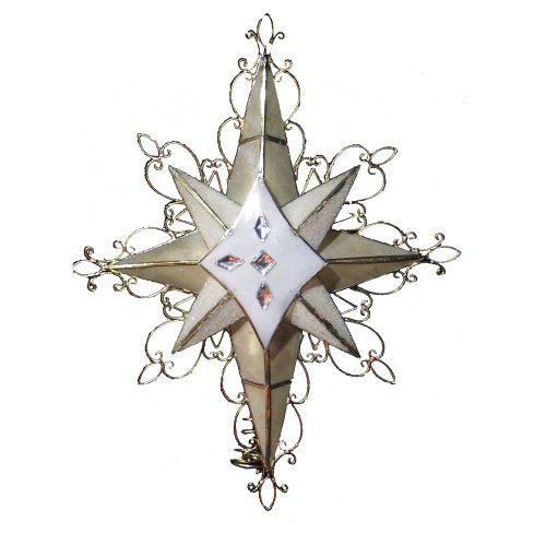 12-1/2-Inch gold wire lighted tree topper. This Kurt Adler 12-1/2-Inch 8-point ornate Bethlehem star treetop is a beautiful way to accent your Christmas tree. Representative of what the three wise men followed, this gold, scrolled wire star has 8 points and lights up to bring a glow and happiness to your home and tree. This tree topper features a 1-1/2-Inch thick gold plated finish, 4 spare bulbs, and 2 spare fuses.