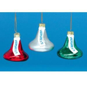 Glass. 3-Inch Hershey Kisses 3-Piece Glass Ornament Set.