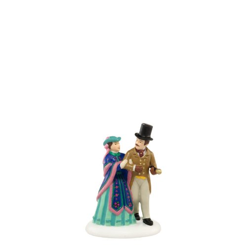 Part of the Dickens' Village Series from Department 56. Victorian England at the time of Charles Dickens was a center of culture for the world, where many traditions we celebrate today took shape. Couple dressed in finery enjoys an evening on the town. Hand-crafted and hand-painted porcelain figurine accessory.