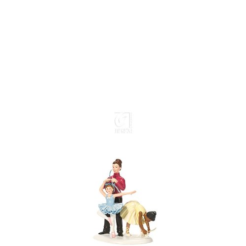 Christmas decoration not a toy remove surface dust with fine brush or feather duster use no liquid cleaners Ballet teacher tying bow on head of Anglo girl next to African American girl tying her toe shoes porcelain accessory figurine Original Snow Village figurine Resin