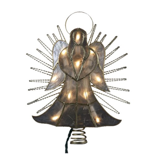 This Kurt Adler 10 Capiz Angel with Twisted Wire Treetop is a beautiful, classic way to add to the decor of your Christmas tree. Its simple design features an angel-shaped brass plated finish wire frame, accented by a spray of twisted brass wire rays from behind. Includes 4 spare bulbs and 2 spare fuses.