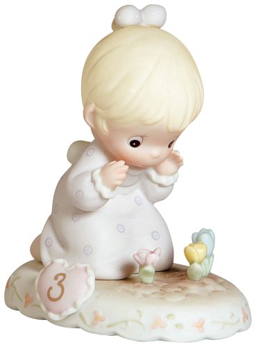 Infused with honest emotion it shares a message that speaks straight to the heart Precious Moments little girl watching flowers blooming with a number 3 on a heart figurine Packaged in a box made from recycled materials Indoor Use Only; Should Be Dusted Occasionally Each Piece Is Porcelain Bisque; Hand Sculpted and Hand Painted