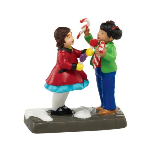 Christmas In The City-a collection from Department 56-with all the hustle and bustle, this series captures the elegance and excitement of the city. Two forever friends share holiday sweets. Hand-crafted and hand-painted porcelain figurine accessory.